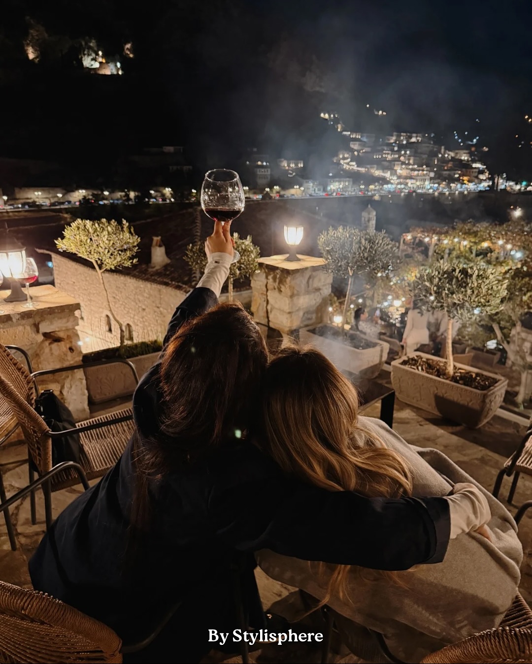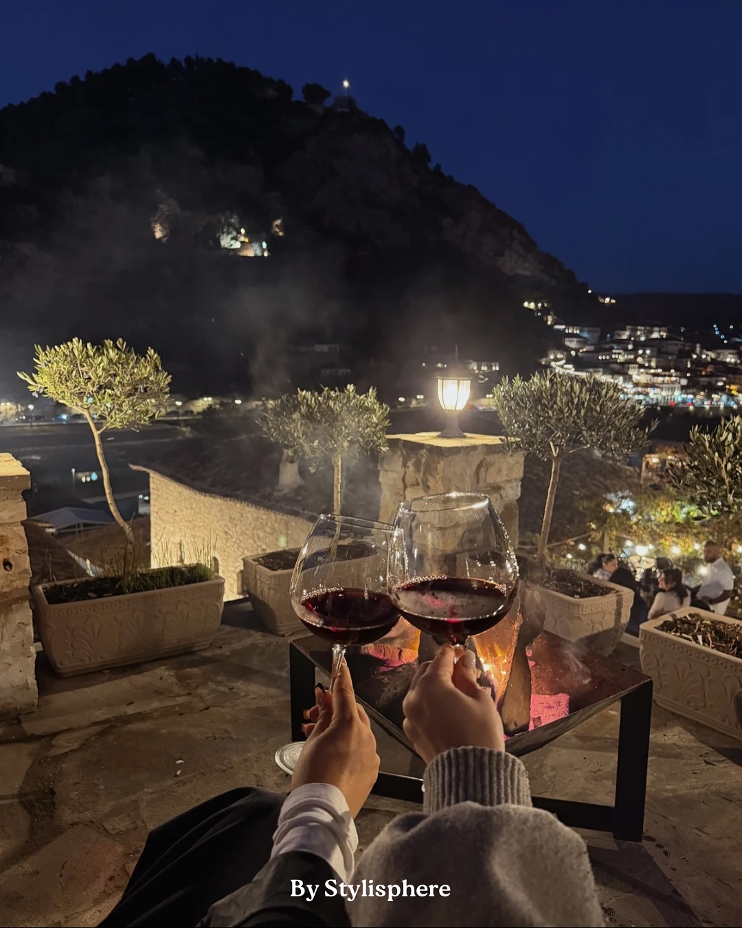 Ashtu si e mbyllëm dhe ne: një gotë verë, miqtë pranë, zjarri që ngroh dhe para syve qyteti si pikturë, me shtëpitë e tij “një mbi një”.