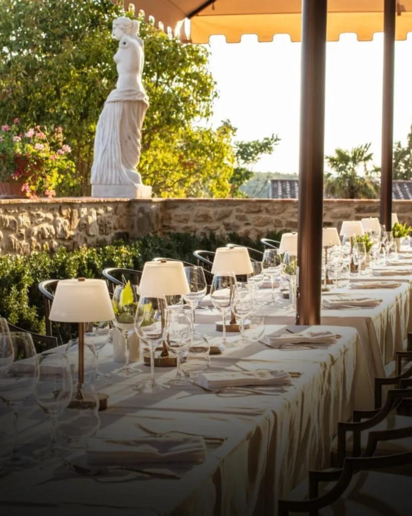 Shefi Mattia Parlanti krijon një menu të bazuar në produkte sezonale, të shoqëruara me verëra toskane të përzgjedhura nga sommelieri Danilo Salvi. Në këtë pallat të restauruar të shekullit XVII, vaktet shijohen ngadalë në oborret prej guri.
