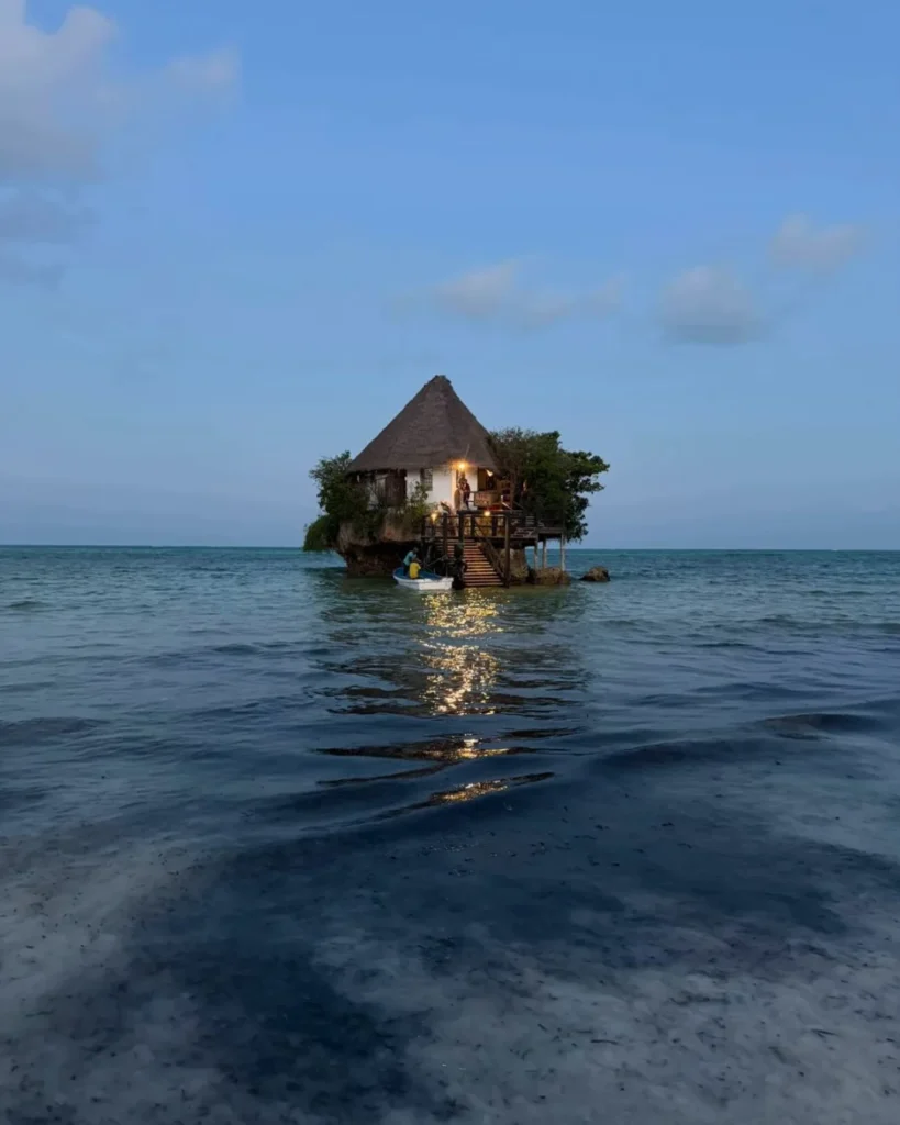 Një restorant i ndërtuar mbi një shkëmb të vetëm në mes të oqeanit, pranë bregut të Michamvi Pingwe.