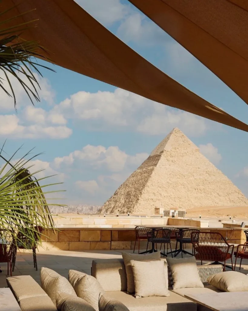 Një restorant modern në Plateau-n e Gizës, me pamje direkte mbi Piramidën e Madhe.